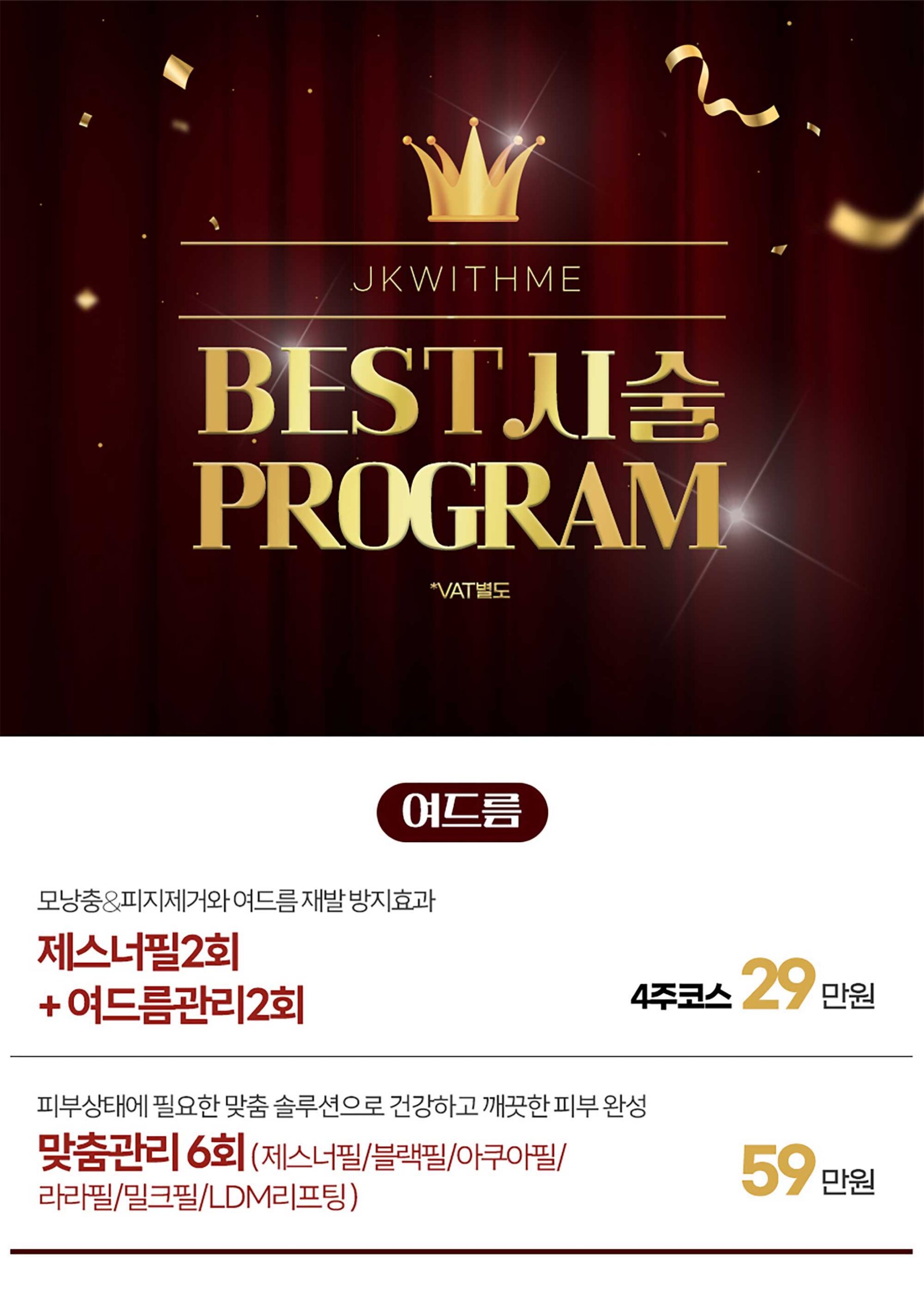 JKWITHME Plastic Surgery · Dermatology 오늘 가장 주목할 JK 위드미 Pick 뷰티 키워드 상담 예약 및 문의하기 JK With Me Plastic Surgery & Dermatology JK With Me CLINIC 공지사항 및 이벤트 전체 이벤트 공지사항 베스트 시술 프로그램 카테고리이벤트 작성일2026-01-15 11:47 조회18 « 특별 프로모션 목록으로 겨울 이벤트 » JK Fit-Log JK 위드미 핏 - 로그 인천눈밑지 재배치 vs 제거, 어떤 차이가 있을까요? 인천이중턱지방흡입 전, 이중턱의 구조적 원인부터 입술필러 빨대 사용 시 주의 사항 송도리쥬란 피부 재생은 어떻게 이루어질까요? 테크노파크역피부과 피부 타입 분석의 모든 것 송도탈모병원에서 살펴보는 탈모 초기와 진행형의 차이 송도코수술 전 알아두면 좋은 남자코성형 기준 보톡스 후 세안 시기와 주의 사항, 꼭 알아두세요 인천 연수구 필러 후 붓기와 멍은 왜 생길까요? 인천 이마거상으로 알아보는 이마 처짐과 인상 변화