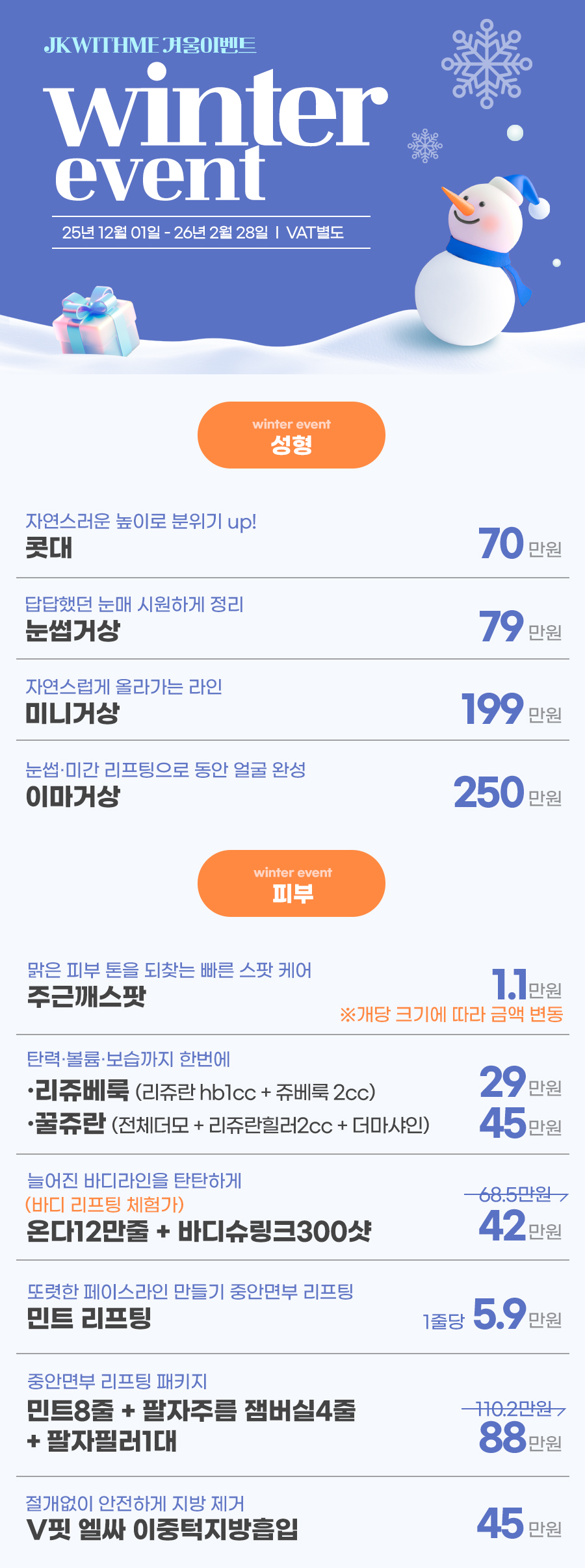 JKWITHME Plastic Surgery · Dermatology 오늘 가장 주목할 JK 위드미 Pick 뷰티 키워드 상담 예약 및 문의하기 JK With Me Plastic Surgery & Dermatology JK With Me CLINIC 공지사항 및 이벤트 전체 이벤트 공지사항 겨울 이벤트 카테고리이벤트 작성일2026-01-15 12:08 조회8 « 베스트 시술 프로그램 목록으로 화,목 수면비 무료 이벤트 » JK Fit-Log JK 위드미 핏 - 로그 인천눈밑지 재배치 vs 제거, 어떤 차이가 있을까요? 인천이중턱지방흡입 전, 이중턱의 구조적 원인부터 입술필러 빨대 사용 시 주의 사항 송도리쥬란 피부 재생은 어떻게 이루어질까요? 테크노파크역피부과 피부 타입 분석의 모든 것 송도탈모병원에서 살펴보는 탈모 초기와 진행형의 차이 송도코수술 전 알아두면 좋은 남자코성형 기준 보톡스 후 세안 시기와 주의 사항, 꼭 알아두세요 인천 연수구 필러 후 붓기와 멍은 왜 생길까요? 인천 이마거상으로 알아보는 이마 처짐과 인상 변화